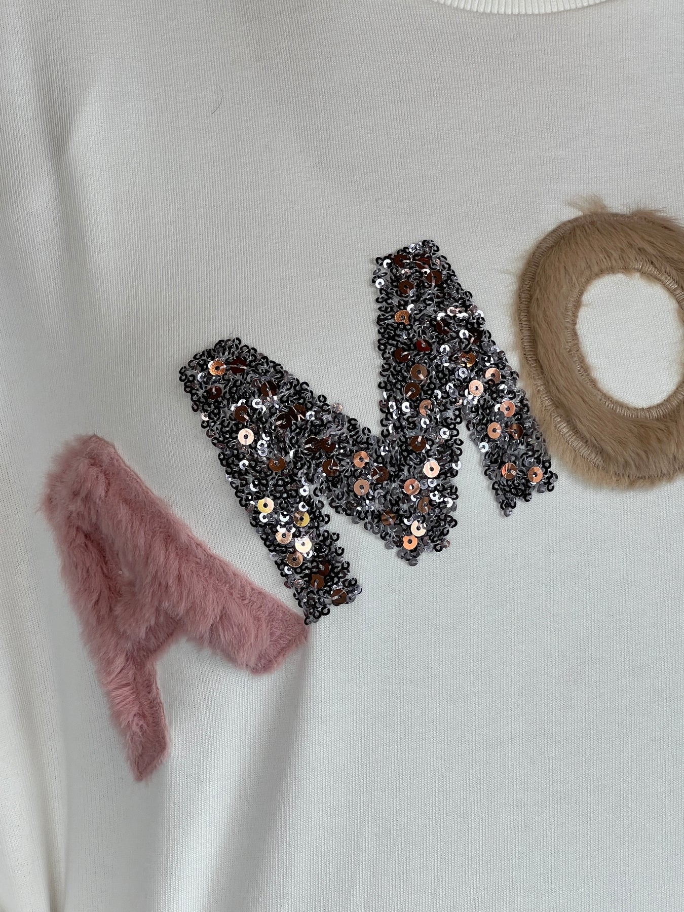 • Features: This soft sweatshirt by MORE & MORE with appliquéd letters on the front looks simply "super cute" with wide, washed-out jeans, but it also works very femininely with a mesh skirt or as a new autumn look with checked Marlene trousers.