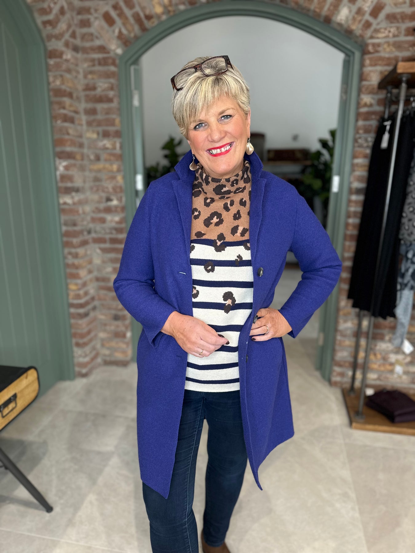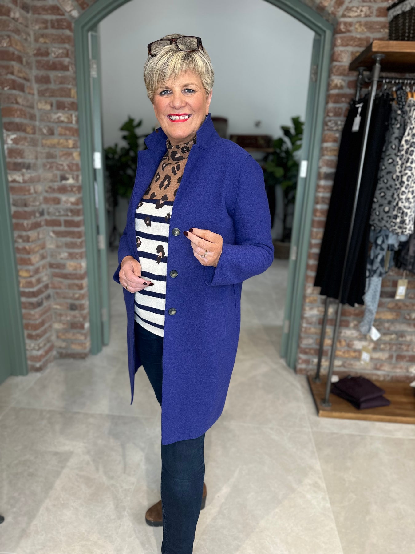 Oui Mayson Boiled Wool Coat In Blue Ribbon