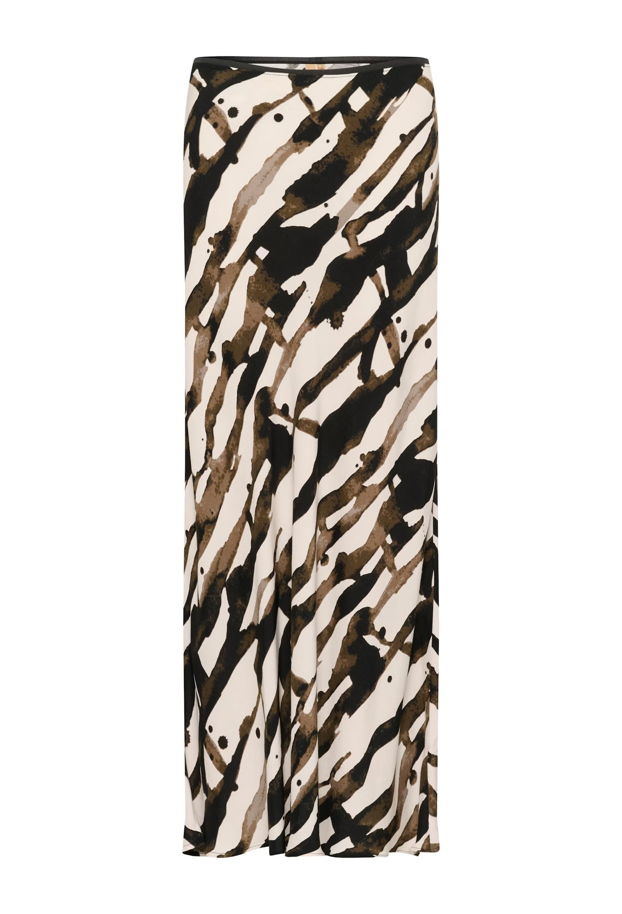 • Features: Brushstroke motif, straight silhouette, fluid drape, pull on skirt, Elastic waistband