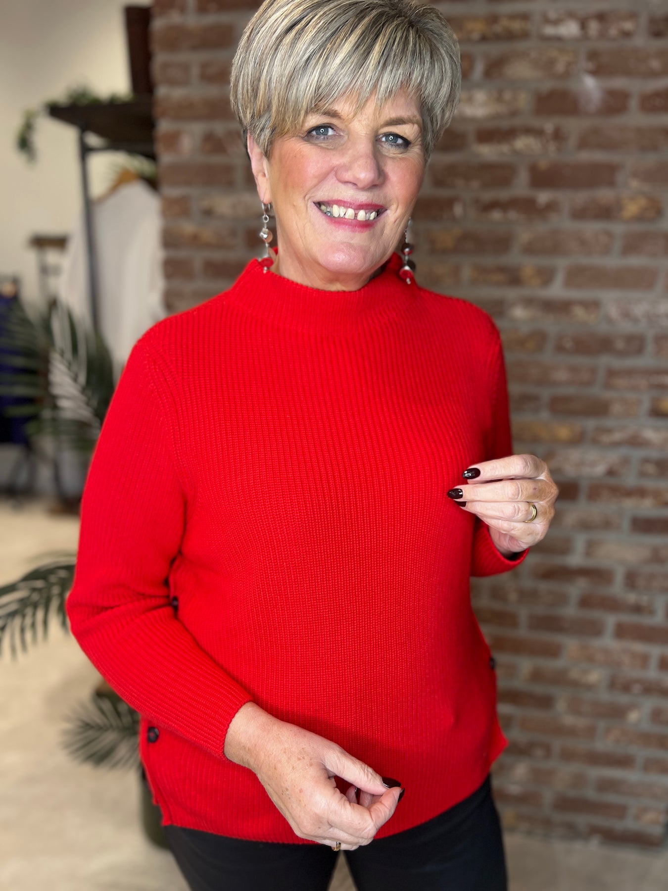 • Brand: Oui Plain Pullover With Buttons In High Risk Red