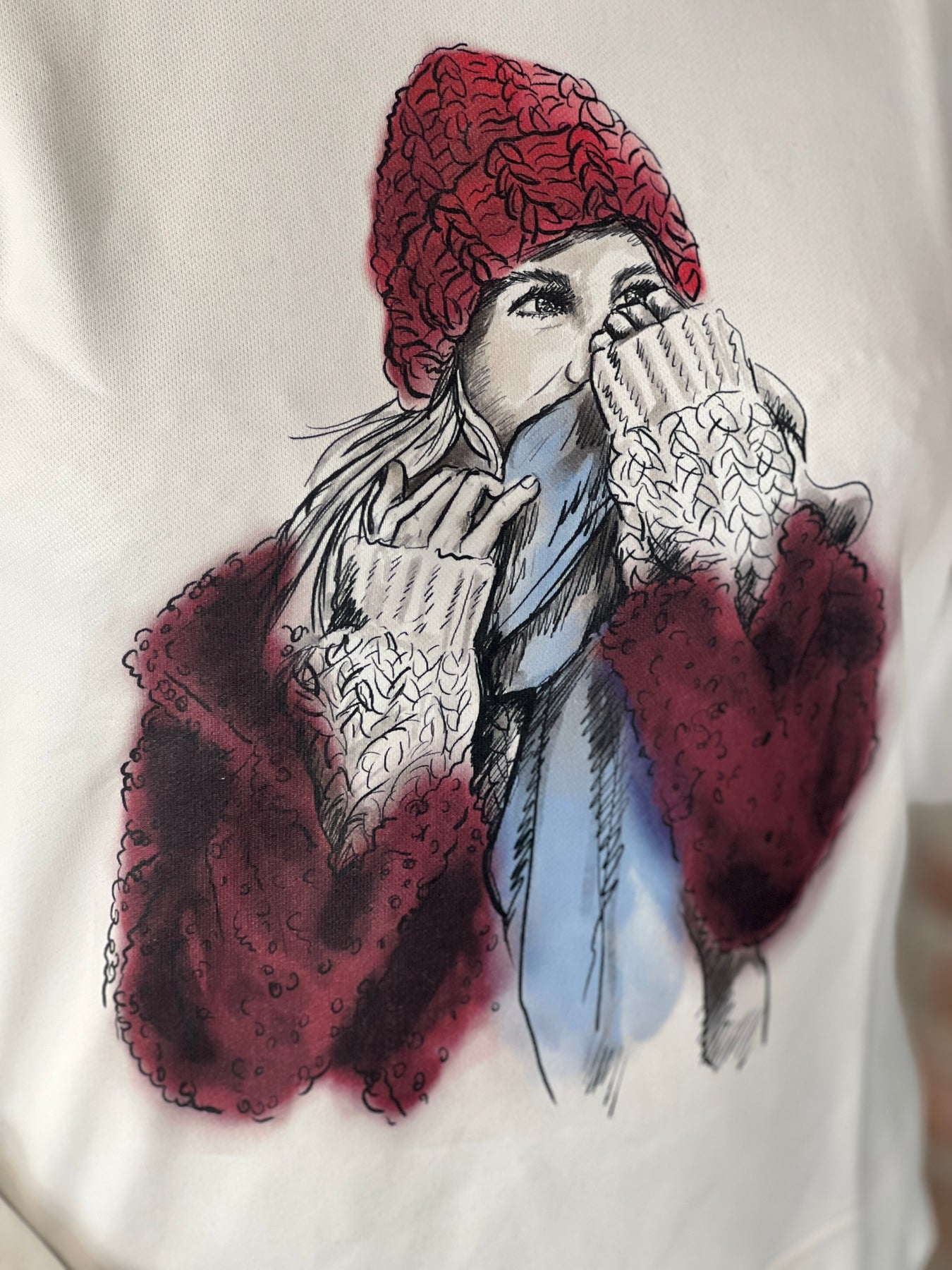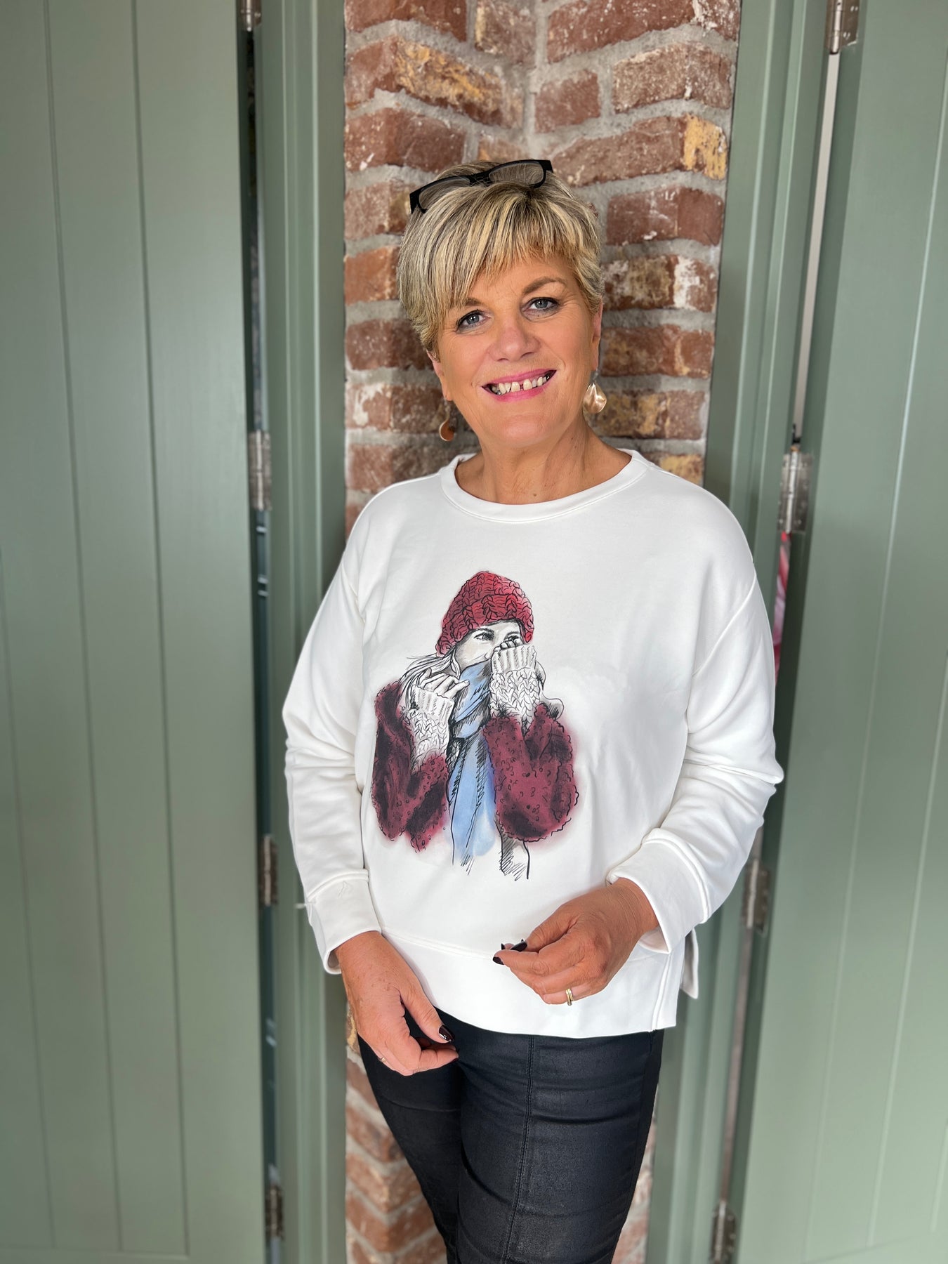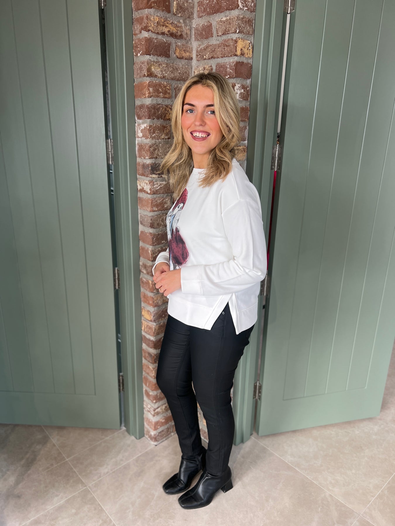 Milano Italy Round Neck Print Sweatshirt In Off White
