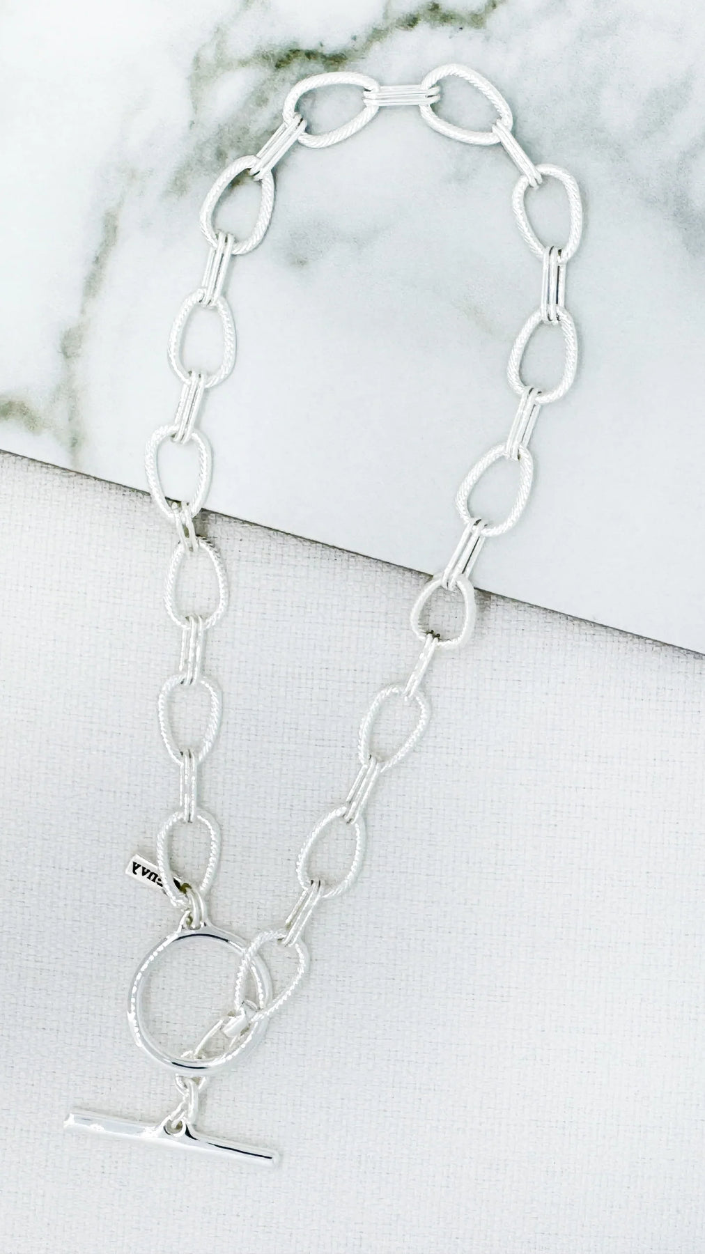 Short silver link T-bar necklace