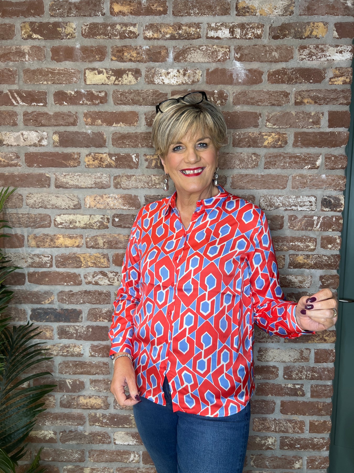 Milano Italy Patterned Blouse In Red multi