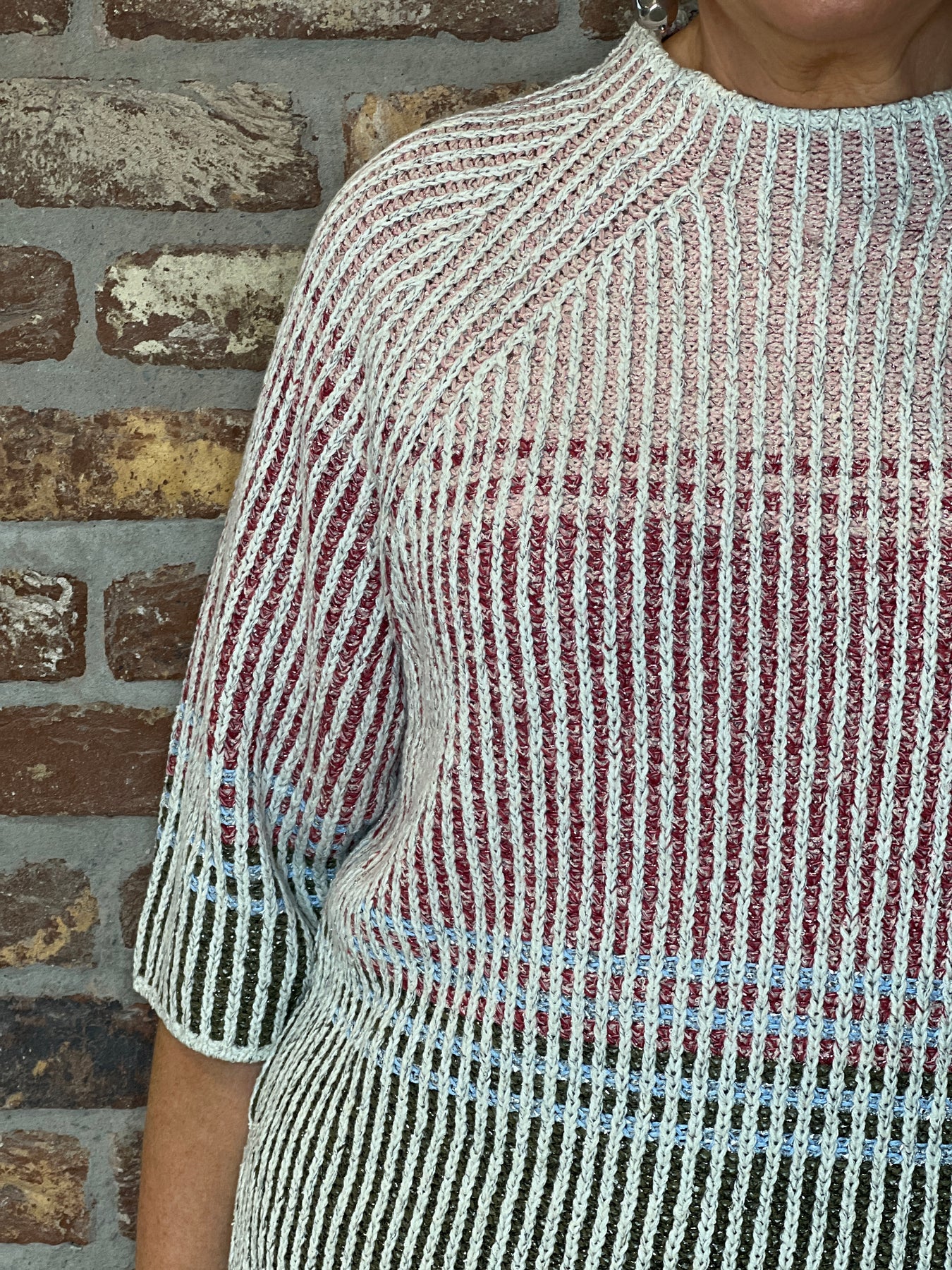 • Description:  Oui block stripe pullover In White & pink