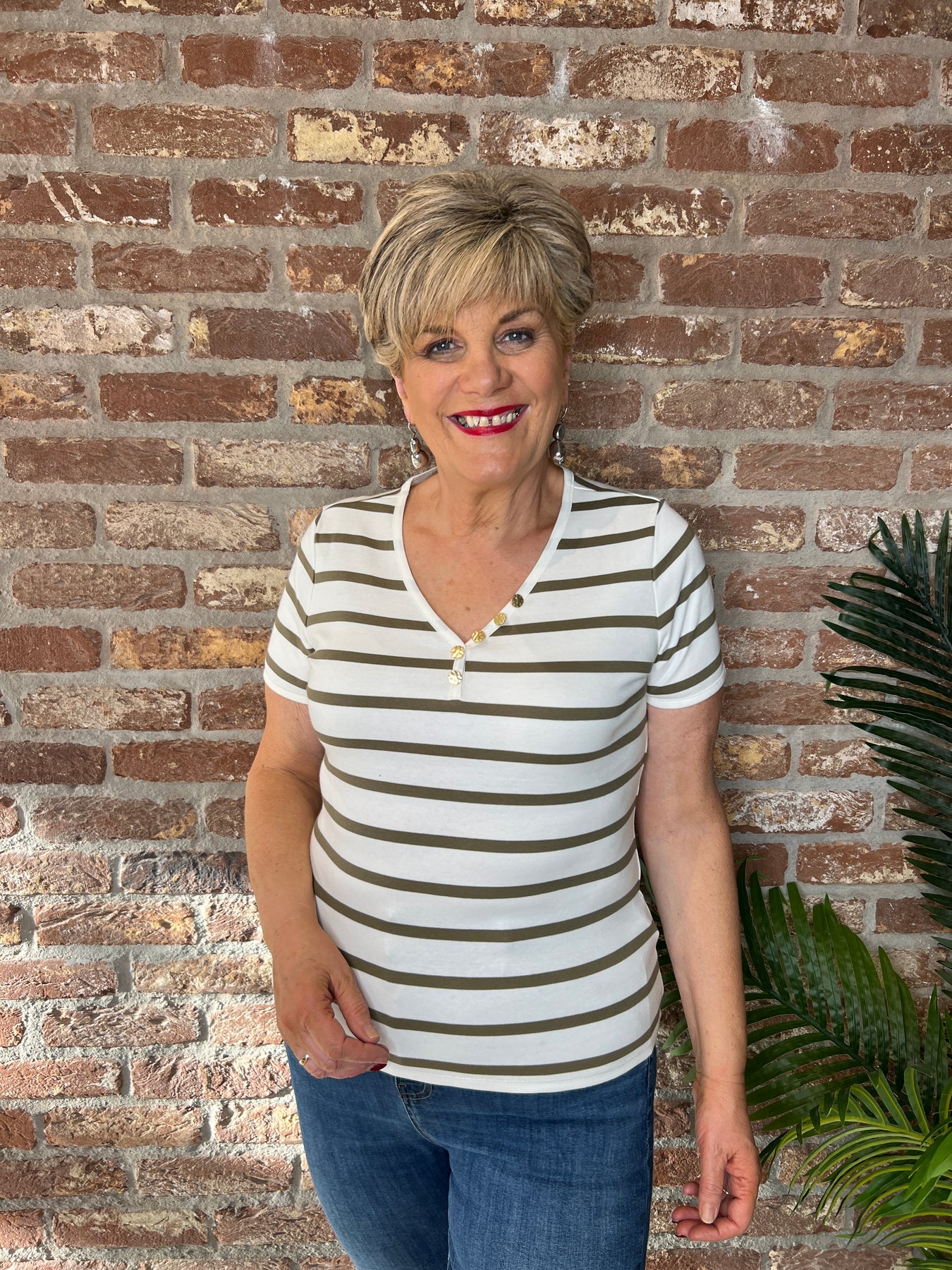 • Description:  Oui Striped T-shirt In White & Khaki