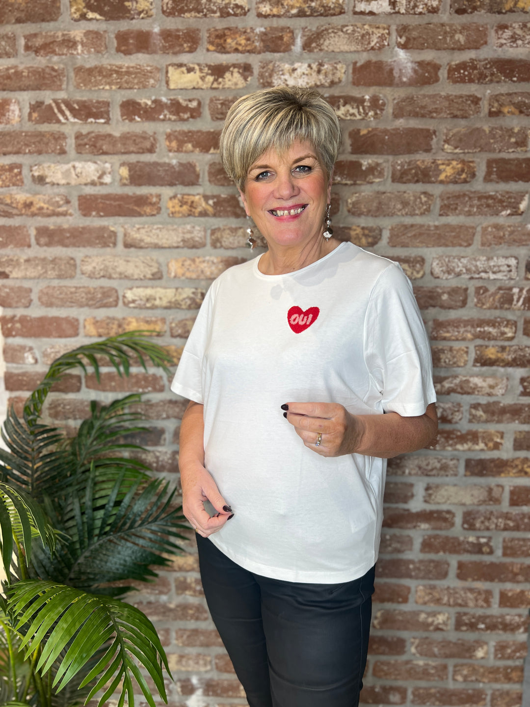 Oui Heart & Stripes Print Scarf In Pink & Red