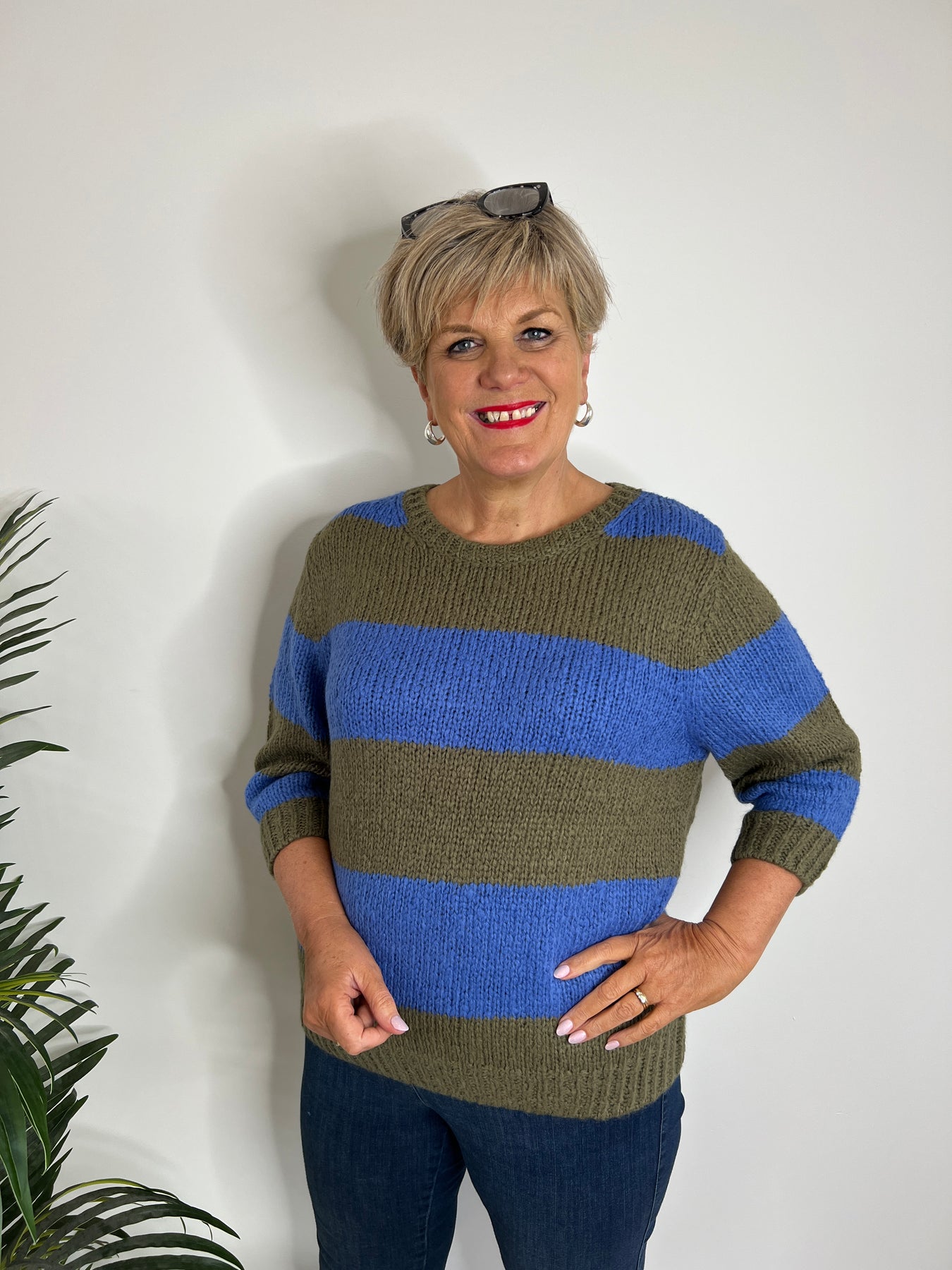 • Brand: Oui Esmy Striped Pullover In Khaki & Blue