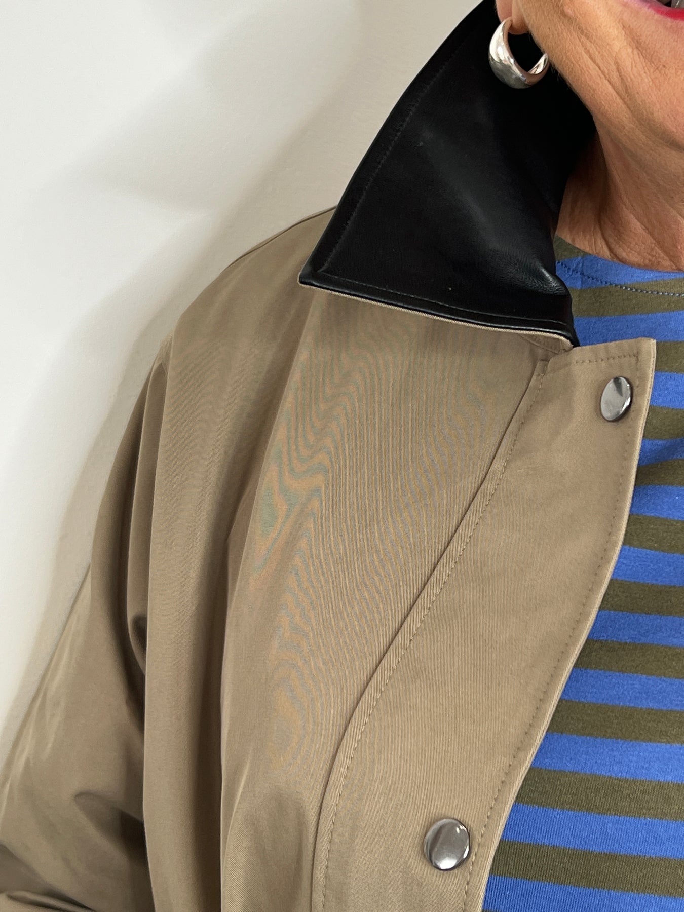• Cotton blend, contrasting colour collar in leather look