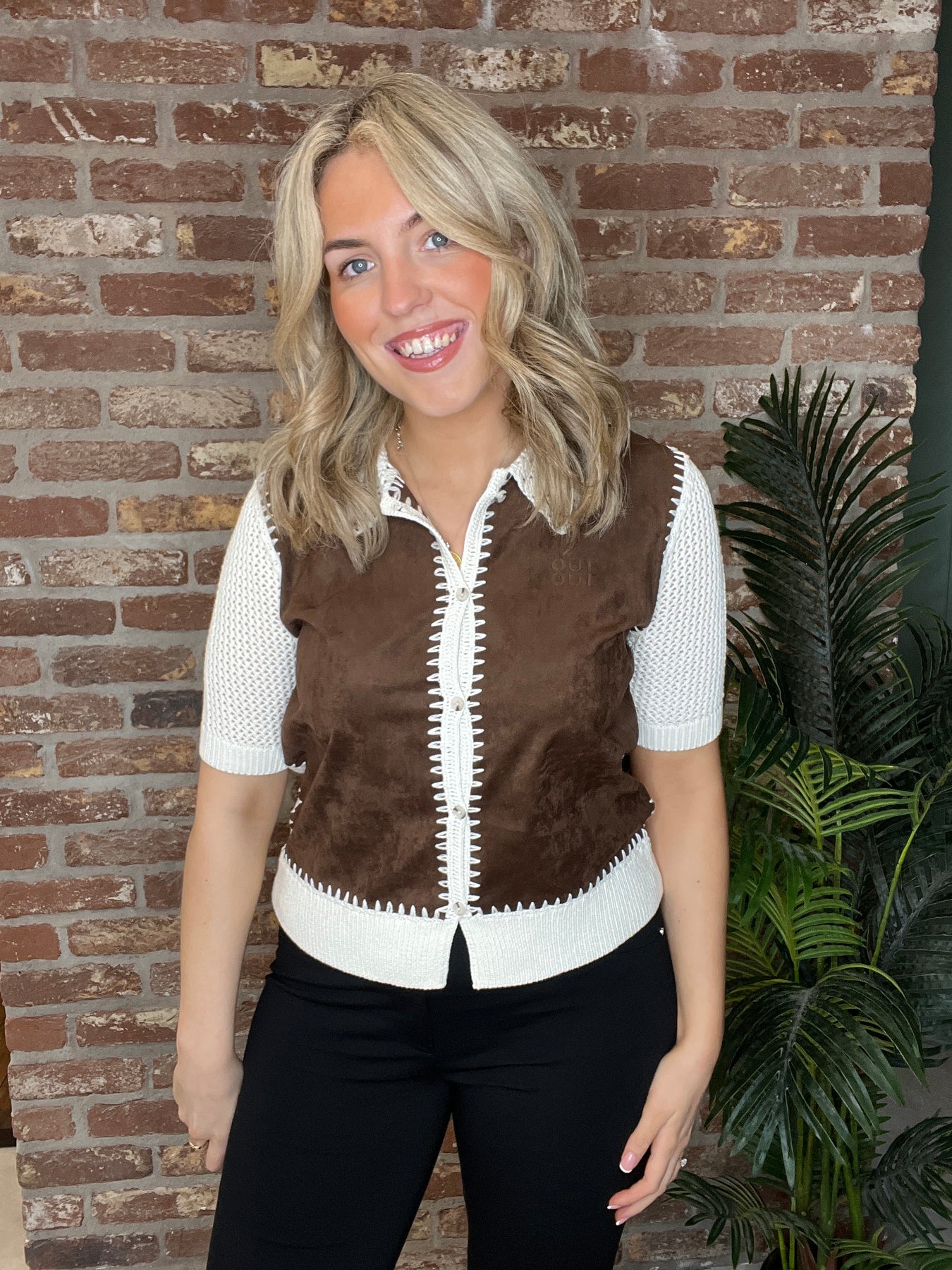 • Pure cotton in net look knitted, elastic fabric in velour look with OUI logo embossing