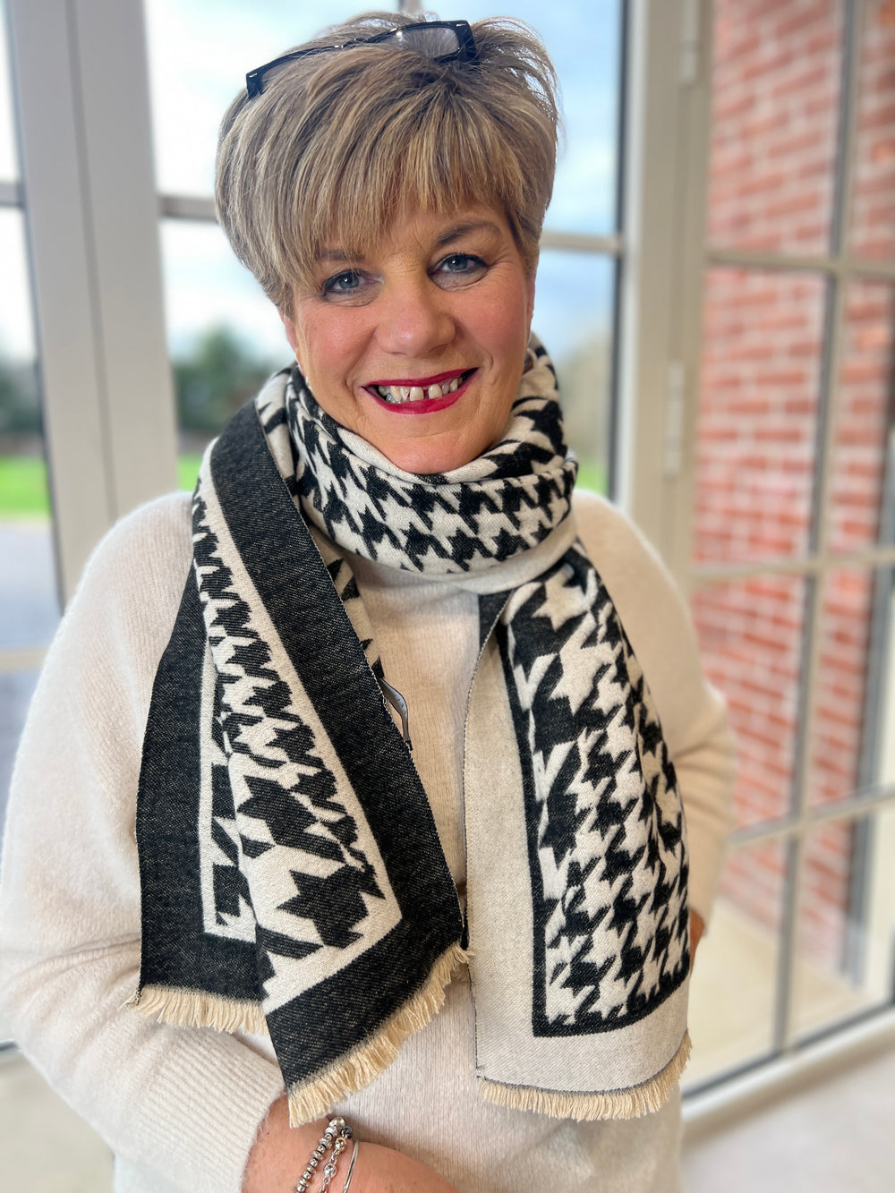 PERUZZI Black & cream houndstooth Scarf