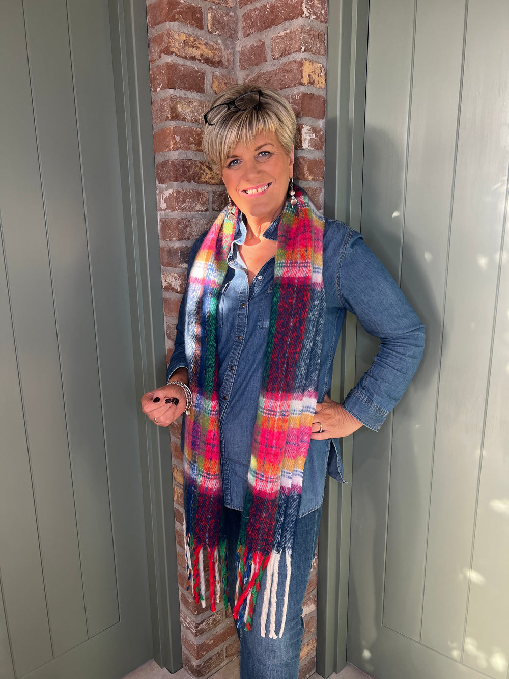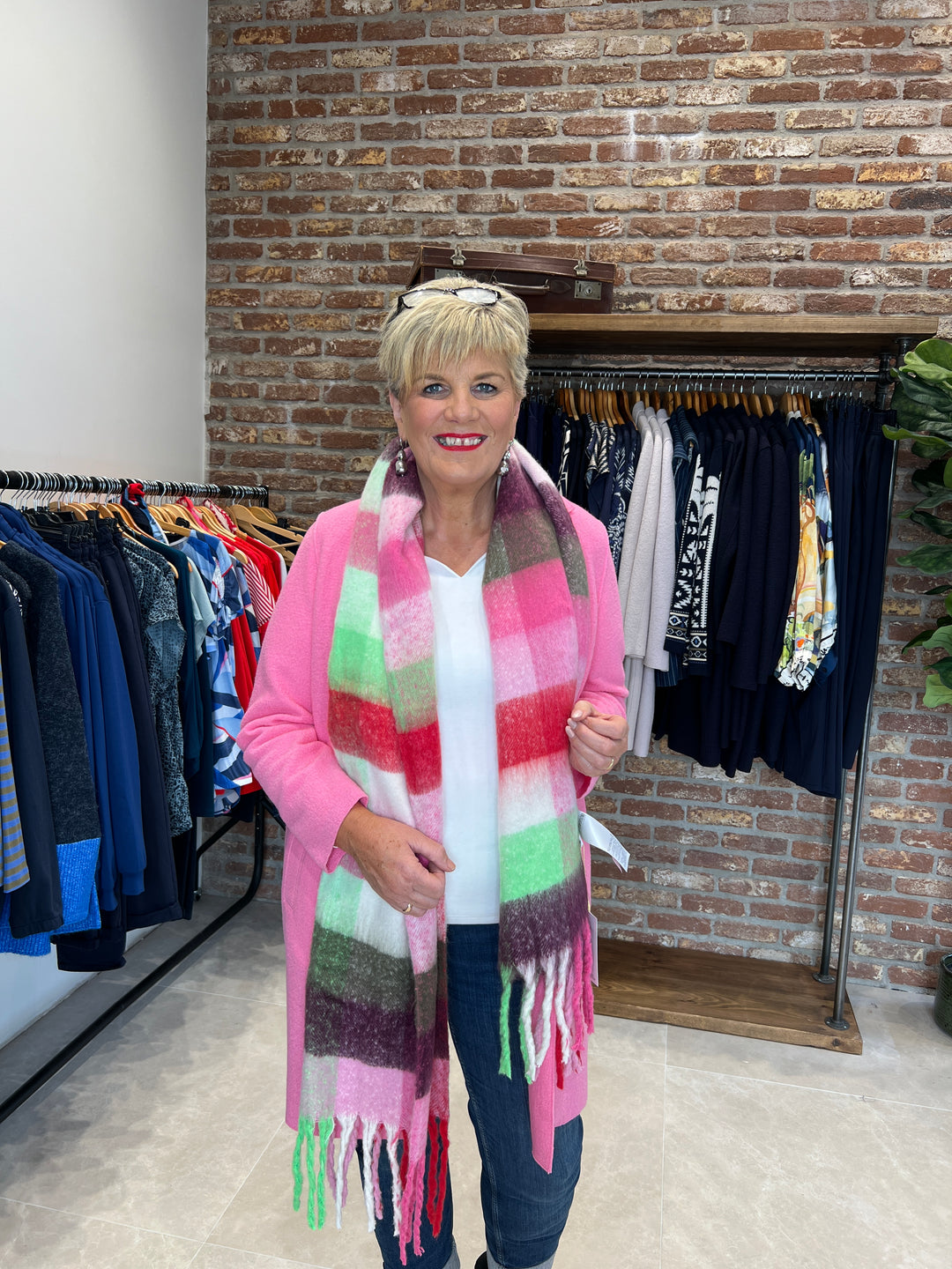 Sophie Tartan Print Scarf In Pink & Green Multi