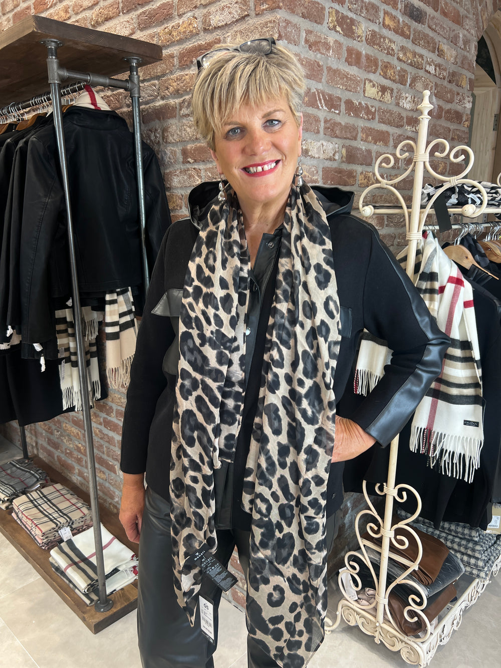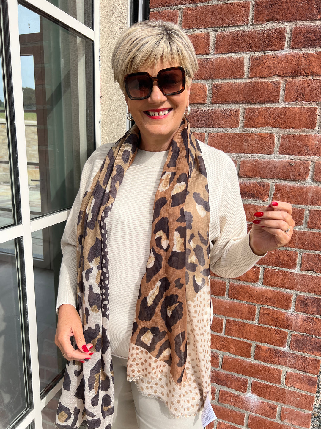 Cashmink Wide Plaid Patterned Scarf In Latte