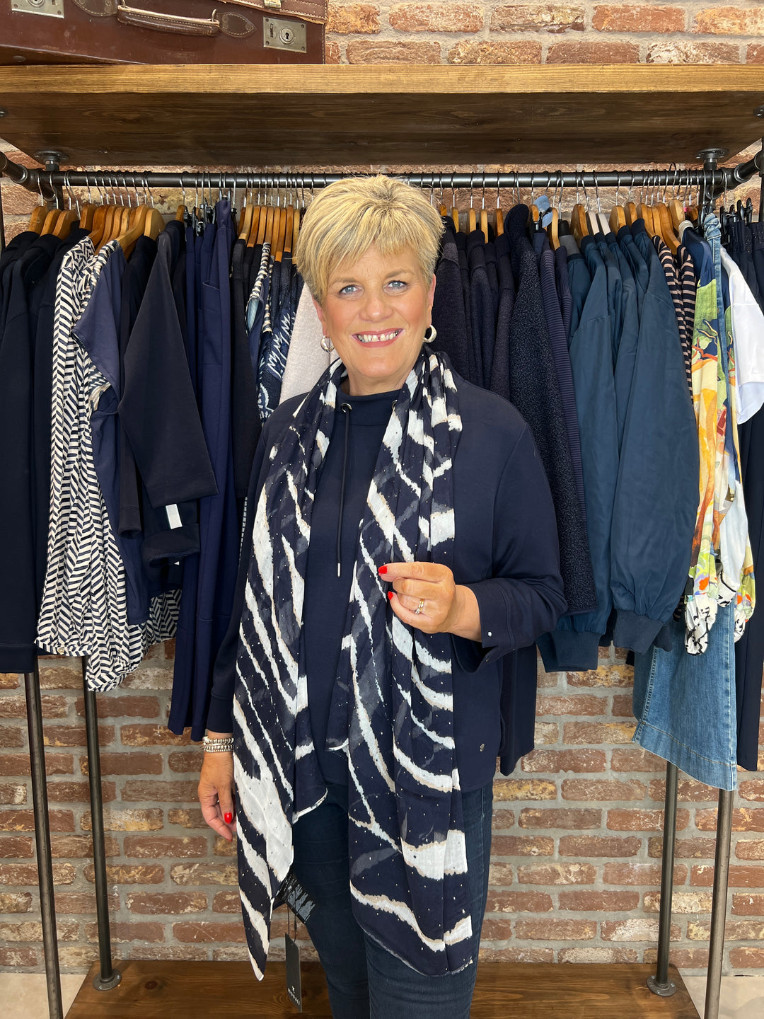 Oui Heart & Stripes Print Scarf In Pink & Red