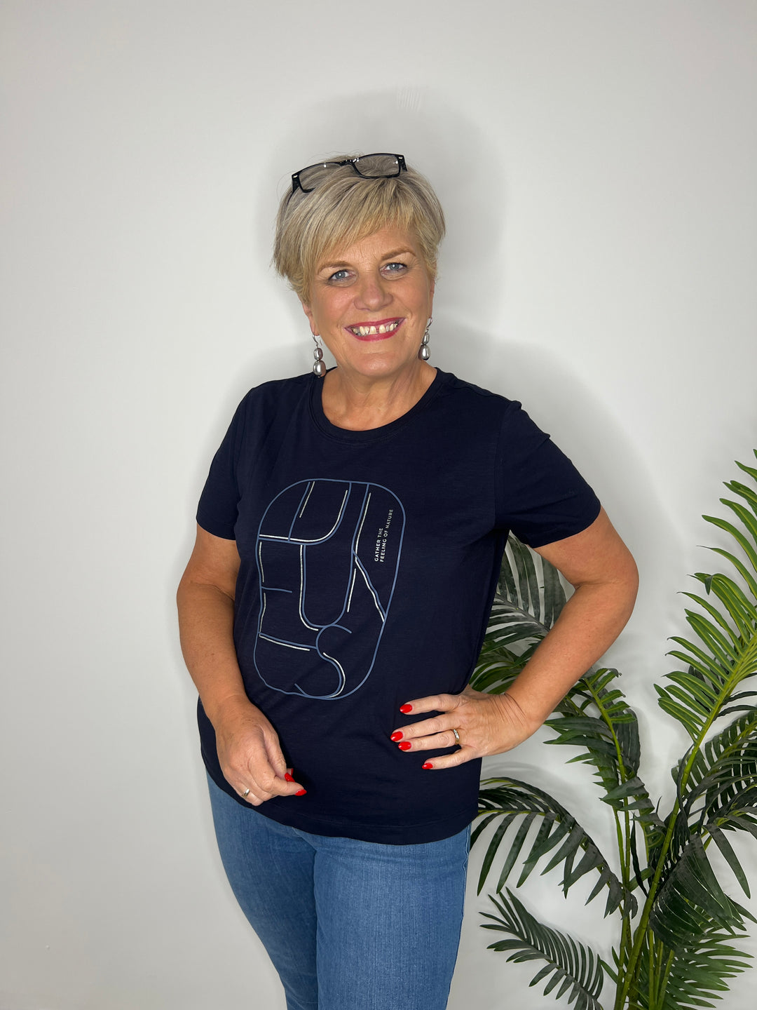 Cecil Floral Round Neck Top In Urban Dark Blue