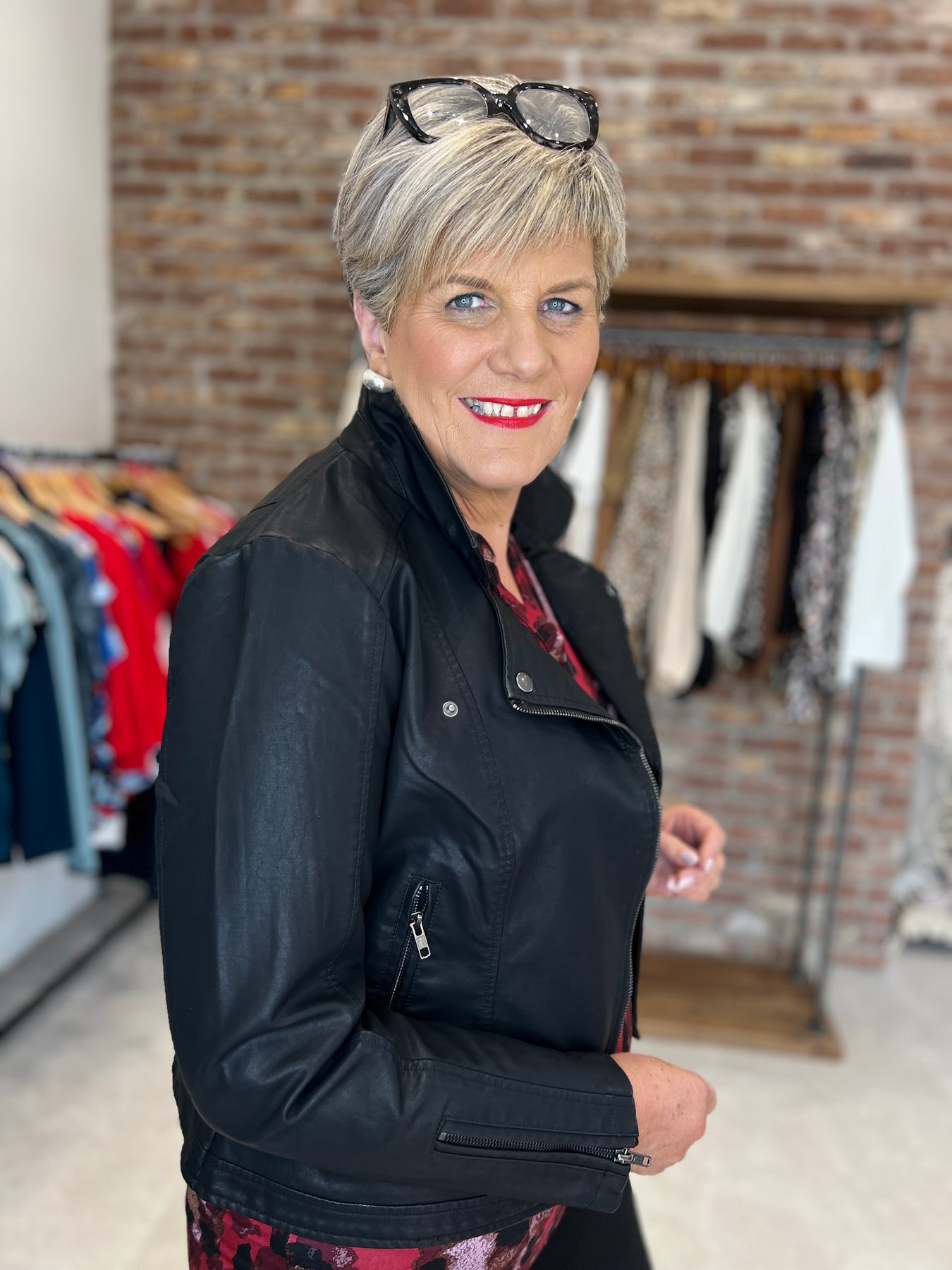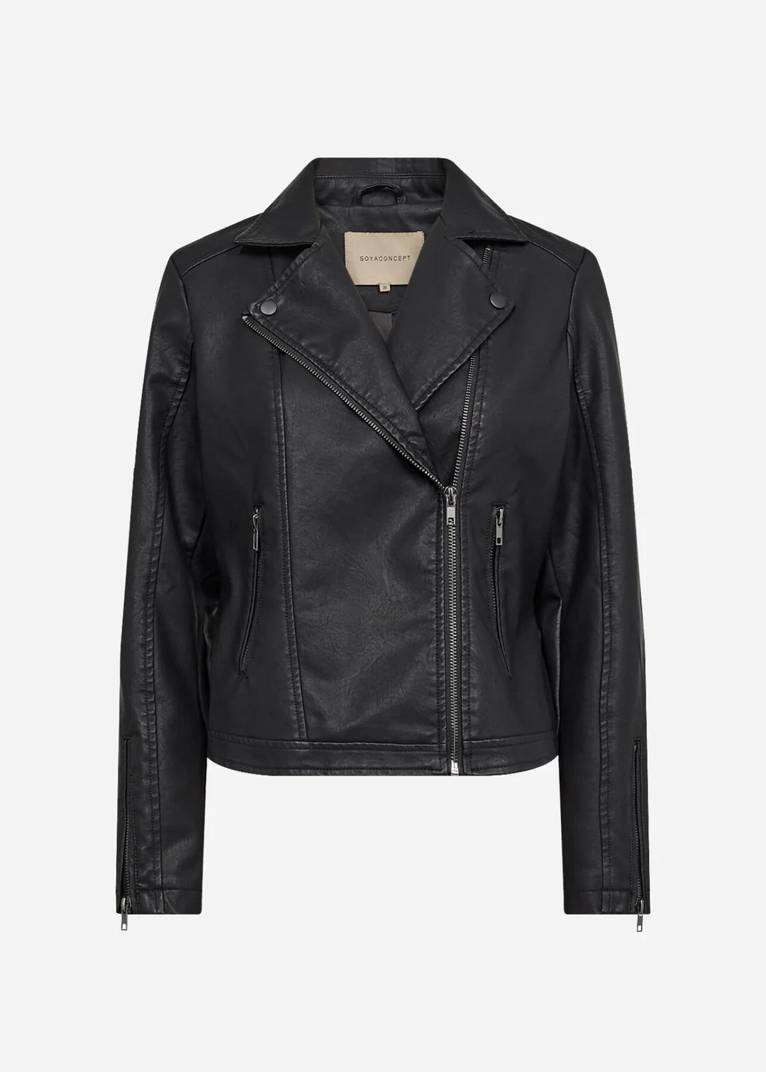 • Features:  zip closer, faux leather jacket, two pockets, revers collar.