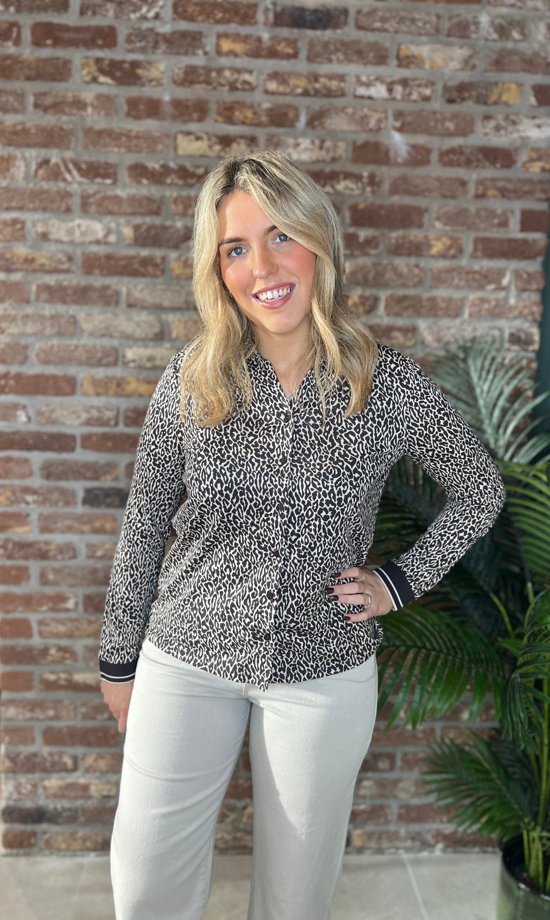 • Features: buttoned detail, collar, patterned cuff.